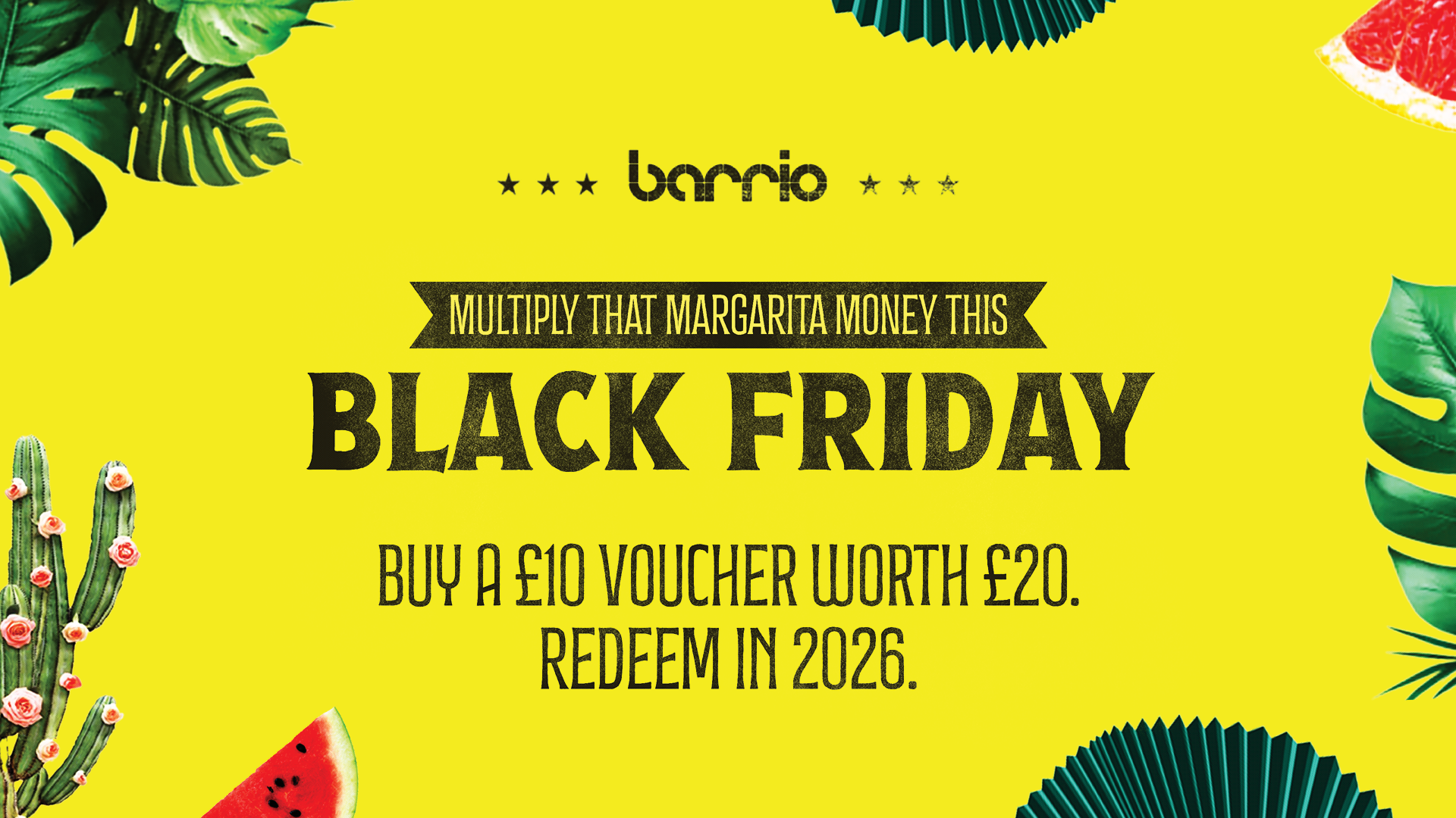 Purchase one of our exclusive Black Friday vouchers and we'll double the dinero, amigo! It’s that simple! Spend £10 and get £20, spend £100 and get £200!